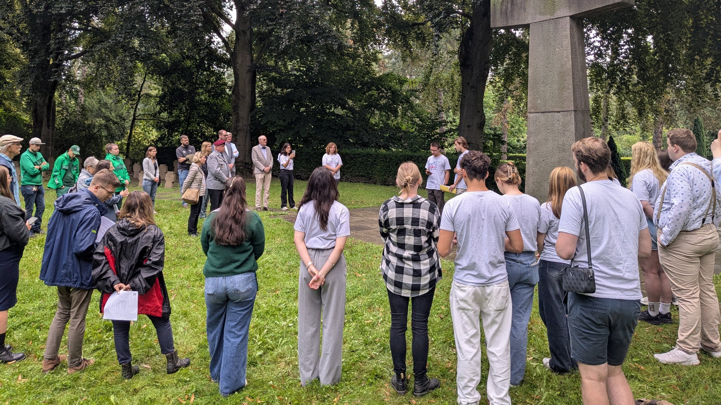 Köln. Mit einer feierlichen Abschlussveranstaltung endete am Dienstag, 5. August 2025, das internationale Jugendprojekt „Courage counts!“ auf dem Südfriedhof. Unweit des Hochkreuzes präsentierten Jugendliche aus Belgien, Ungarn, Deutschland, Großbritannien und Finnland ihre Erlebnisse und Gedanken aus zwei intensiven Wochen gemeinsamer Erinnerungsarbeit.